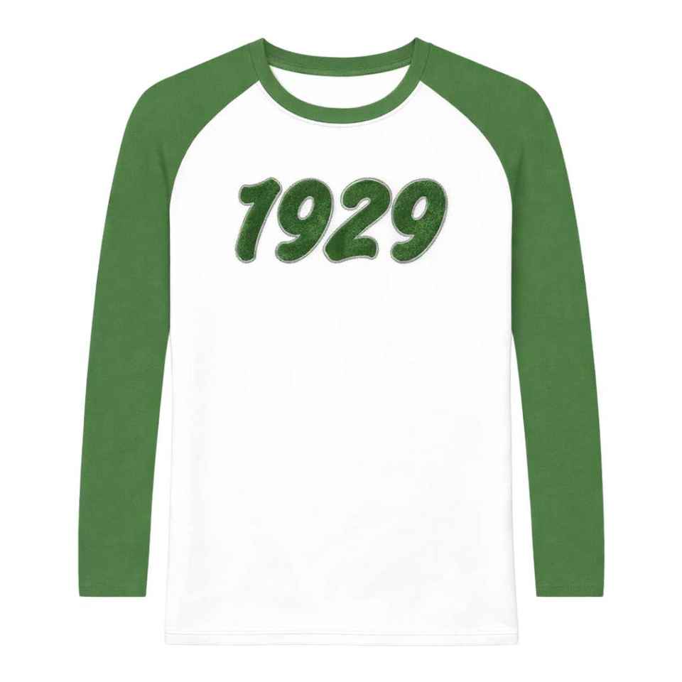 Iota Phi Lambda Sorority White Raglan Long Sleeve Shirt Founding Year 1929 Emerald Green Sleeves Greek Letter Apparel Womens Top