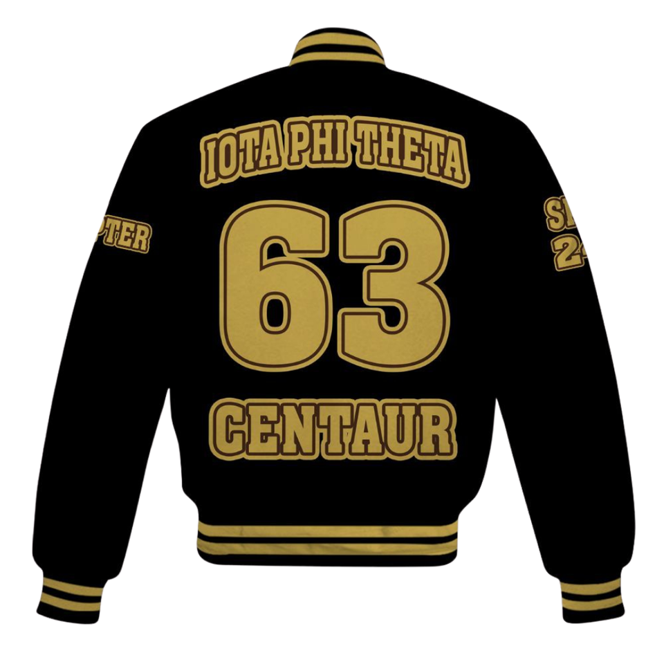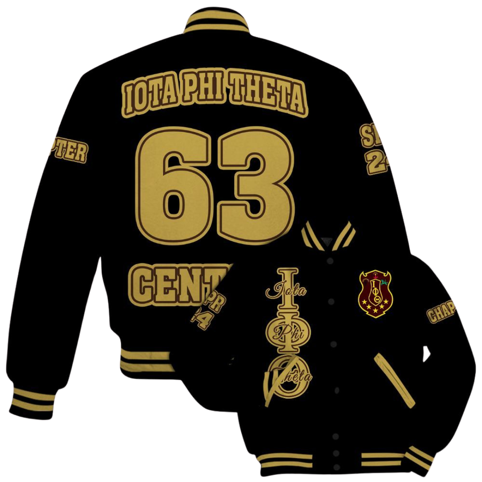 Iota Phi Theta 1963 Premium Varsity Jacket Letterman Brown Gold Greek Life Fraternity Apparel Classic College Wear