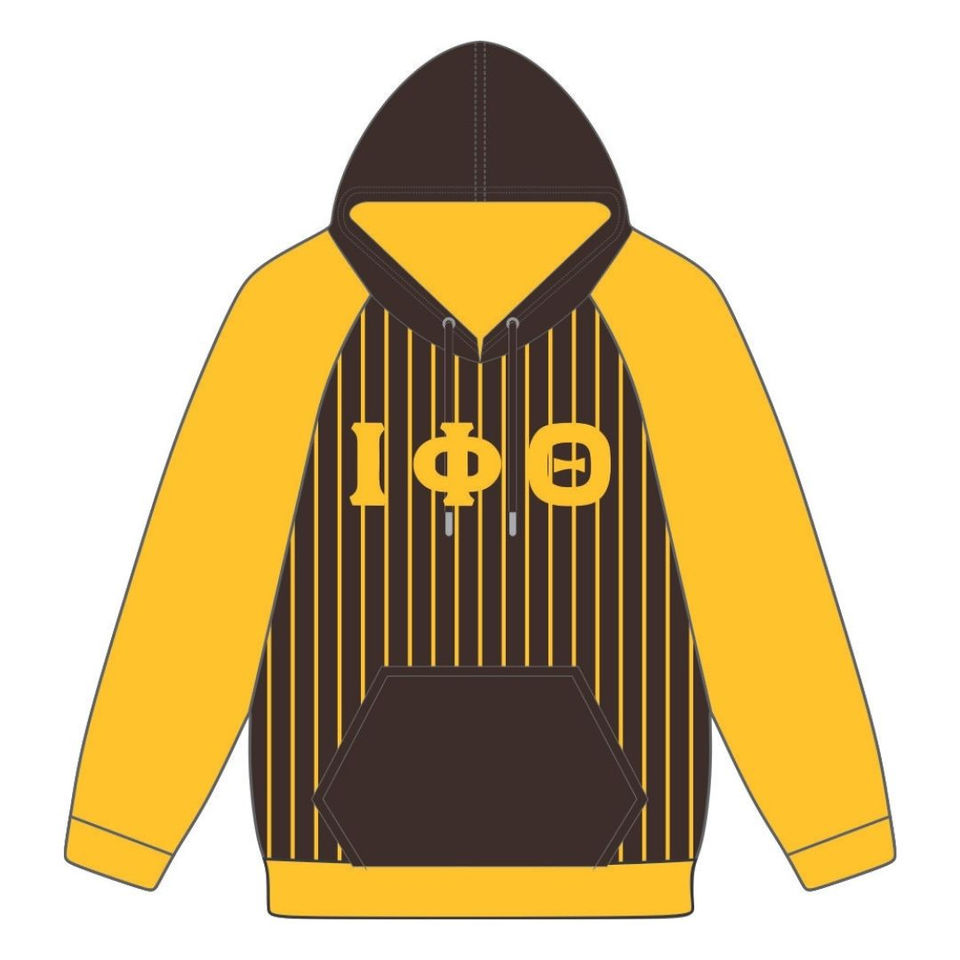 Iota Phi Theta Neutral Body Brown Raglan Pinstripes Pullover Hoodie Greek Fraternity Apparel Custom Divine Nine HBCU Clothing