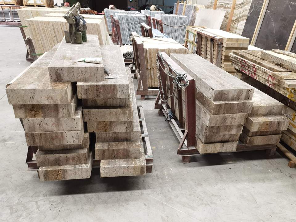 Iran Dark Grey Travertine Slab Marble Tile For Villa Decoration Step Stair