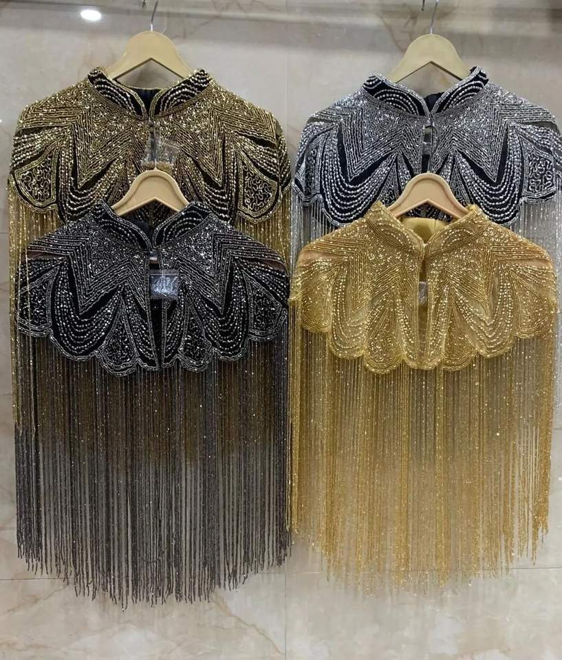 Iraqi Style Satin Fabric Evening Dress Handcrafted Poncho Beads Crystals Lace Pearl Pattern Vintage Anti-Static Breathable