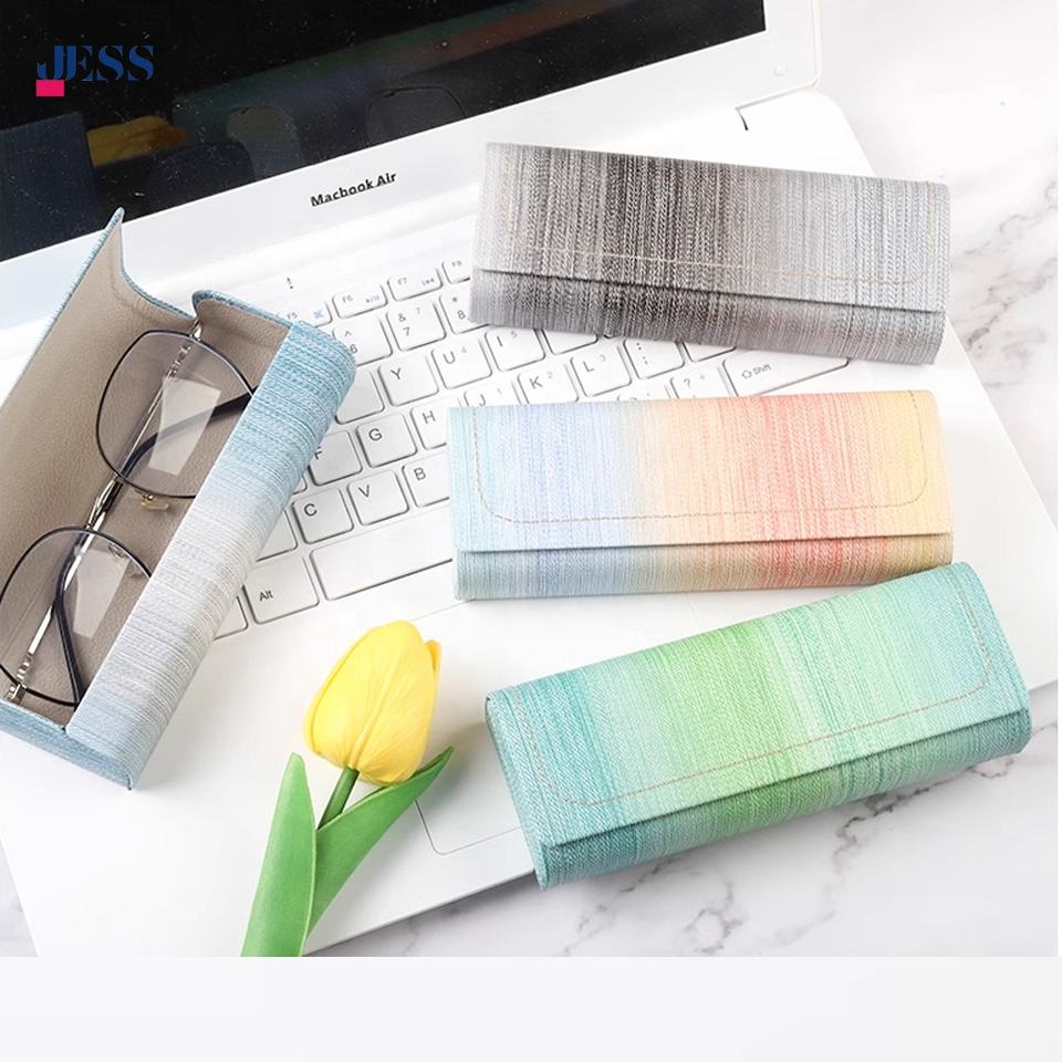 Iridescence PU Eyeglass Packaging Box Used for Storage of Various Frame Glasses Foldable Sunglass Case with Inner Flocking