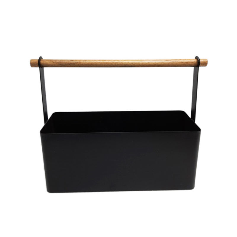 Iron & Acacia Wood Caddy Matt Black Colour Classic Style Storage Racks & Shelving Units Storage Holders in Bulk