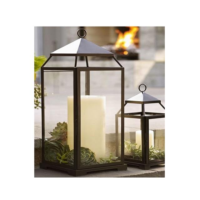 Iron And Glass Black Color Lantern Customized Size And Shape Hanging Lantern For Indoor And Outdoor Usage
