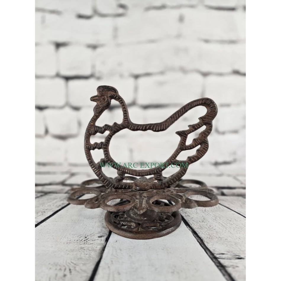 Iron Casted Cock Design Holder Decorative Metal Egg Holder Display Stands for Home Hotel Restaurant Tableware Shelving Unit