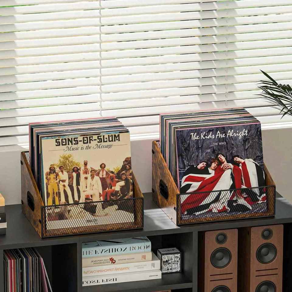 Iron Classic Standing Type Metal Desktop Organizer Box Vinyl Record Album Storage Holder with Foldable Design for Books & Files