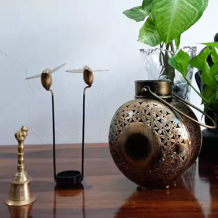 Iron Craft Solid Lantern Bird Pleasant Ceiling Decor Hanging Tealight Candle Holder Ball Shape for Home Use by decor impex