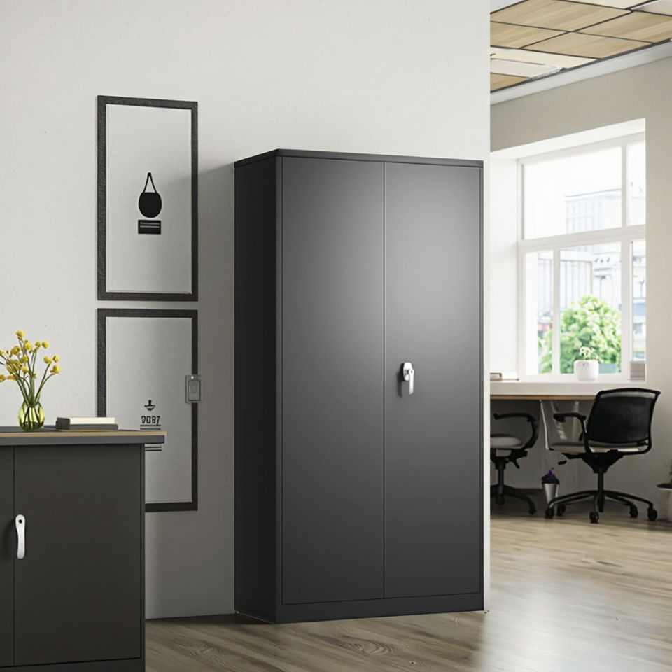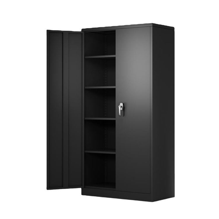 Iron Cupboard Adjustable Layers Shelves Modern Black Office Home Storage Furniture Steel Swing 2 Door Metal Filing Cabinet
