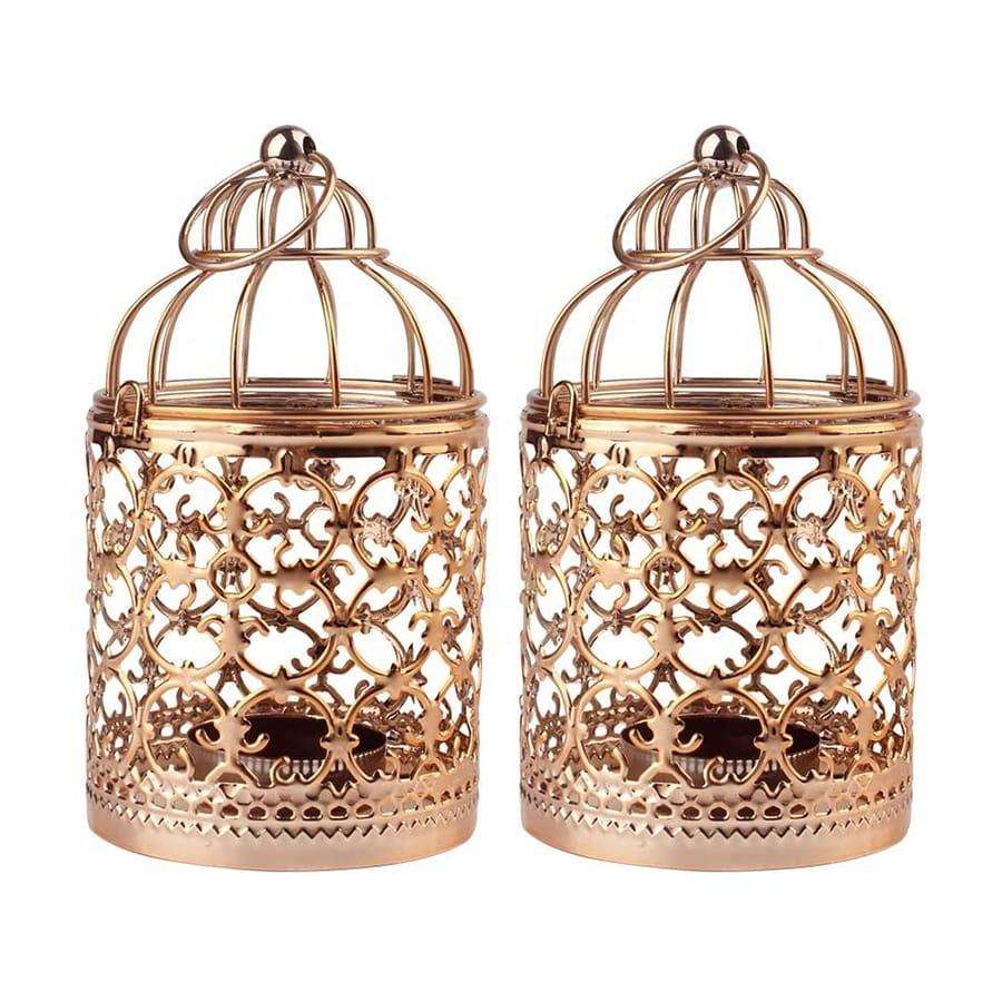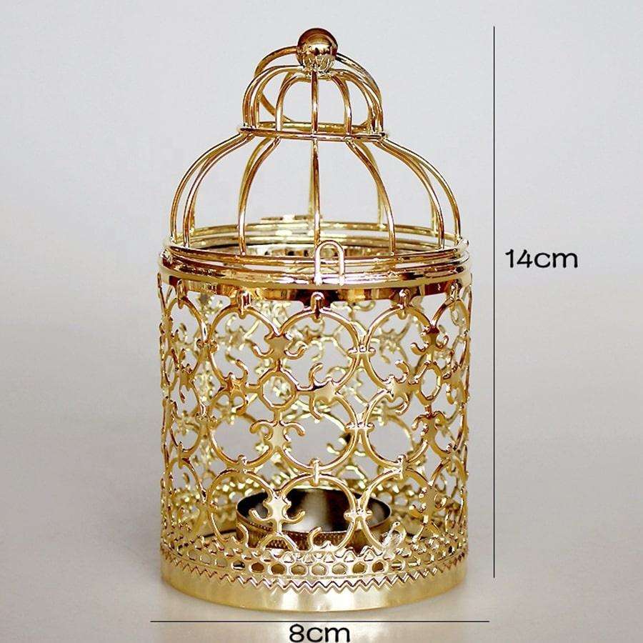 Gold Metal Lantern Candle Holder Decorative Cutwork Cage Hanging Design Home Garden Wedding Table Festival Accent Piece Use