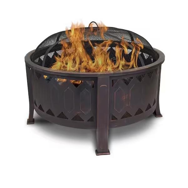 Iron Fire Pit Black Color With Spark Screen For Home Backyard Garden Indoor Outdoor Decorative Wood Burning Fire Pit