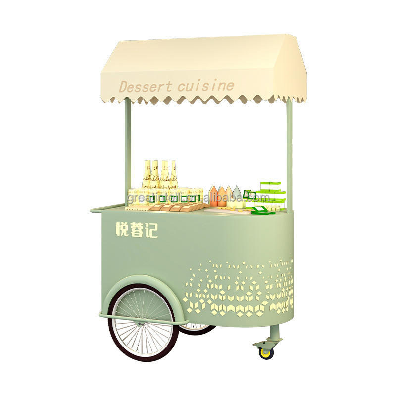 type:Iron Flower Cart Food Snack Beverage Sales Handcart