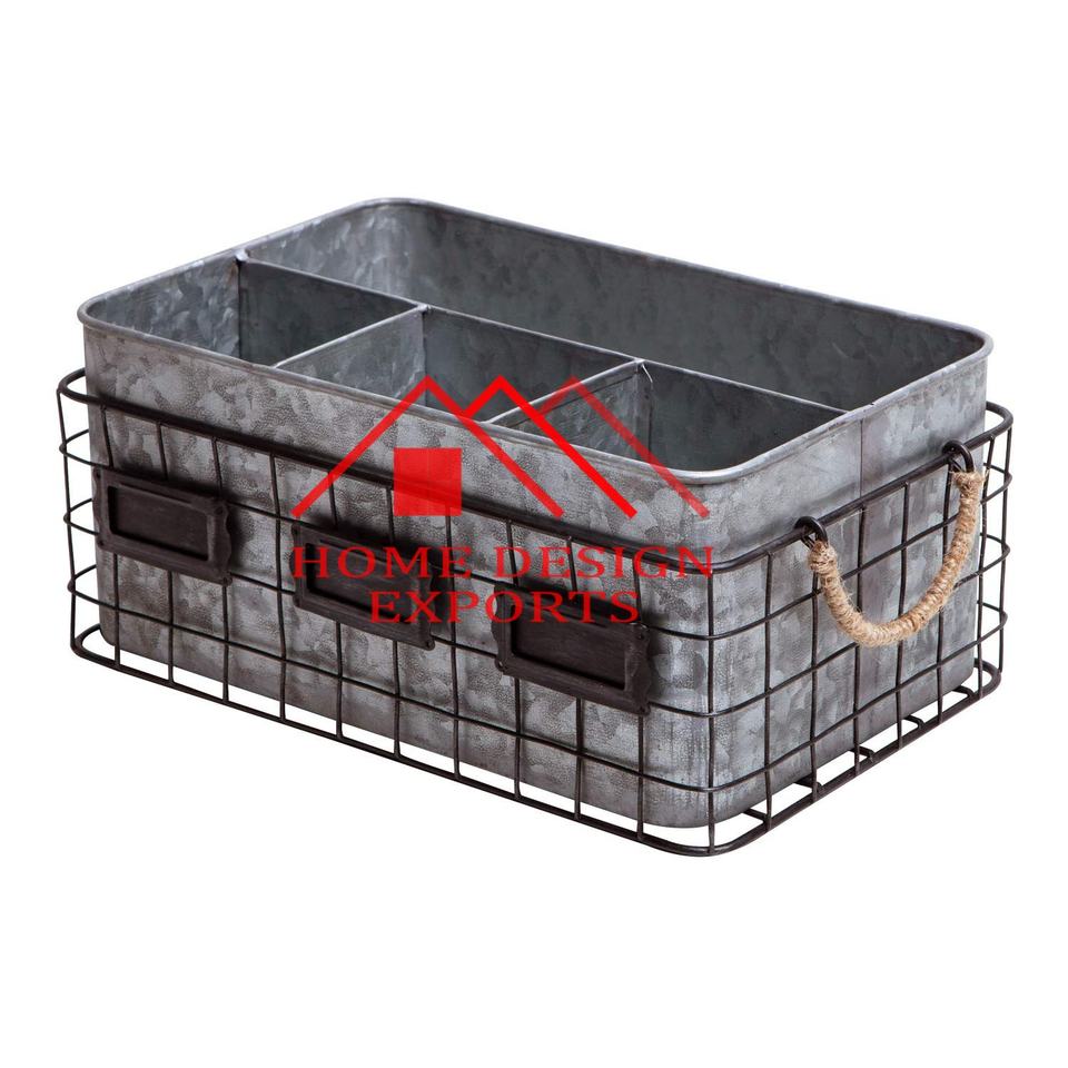 Iron Galvanized Caddy for Parties Farmhouse Utensil Serve Ware Holder Basket Condiment Organizer Dining Table Counter Style 3