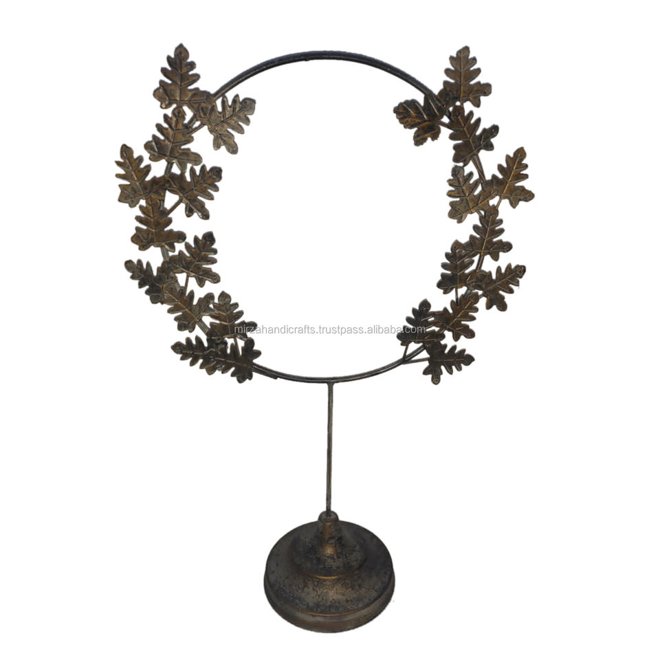 Iron Garden Wind Spinner Antique Round Wrought Iron Gray Leafs Design Wind Spinner