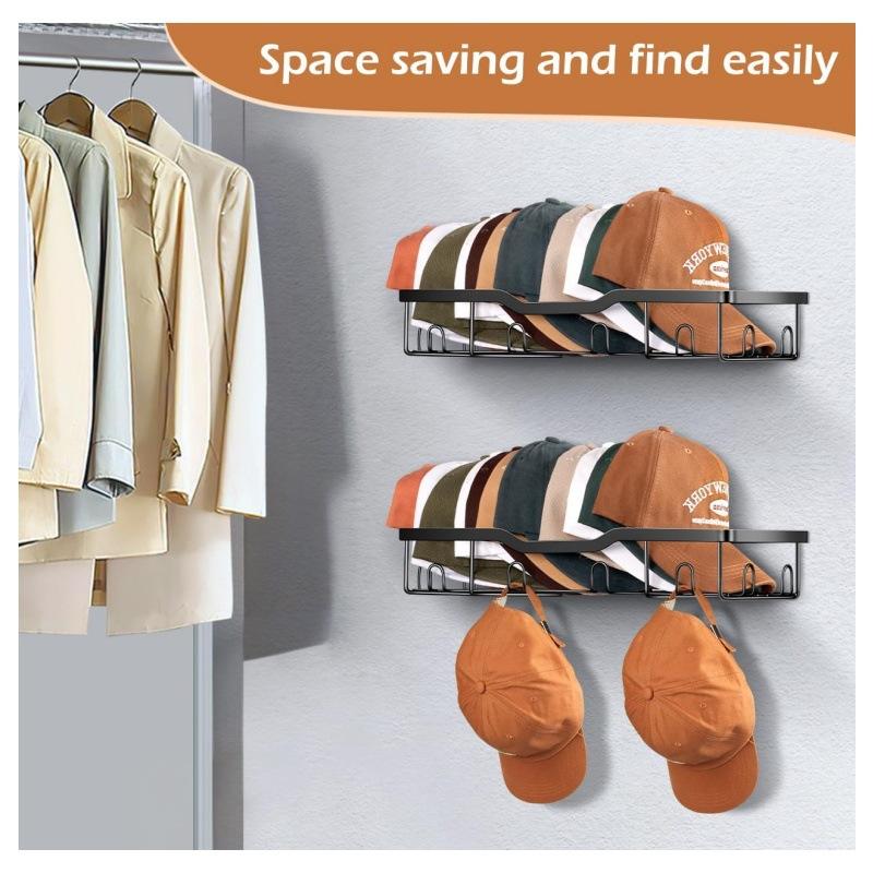 Iron Hat Rack Wall Mounted Storage Shelf 2 Tier Rust Resistant For Bedroom Living Room Customization