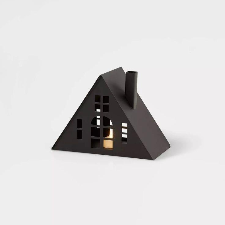 Iron Haunted House Tealight Holder Modern Black Metal Candle Lantern Perfect for Spooky Halloween Decor and Cozy Ambience