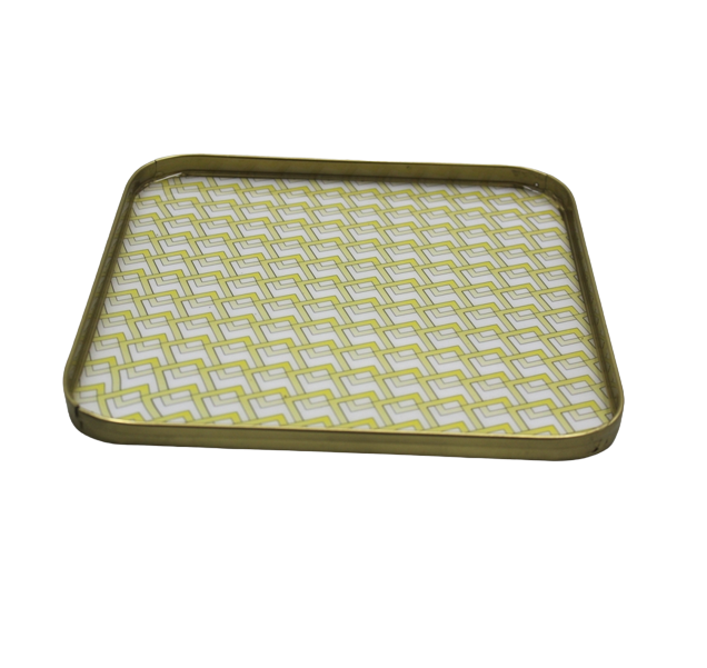 Iron Rectangle Tray With Brass Plating Meena Serving Dishes Tray for Home Ramadan & Table Top Decoration Handmade