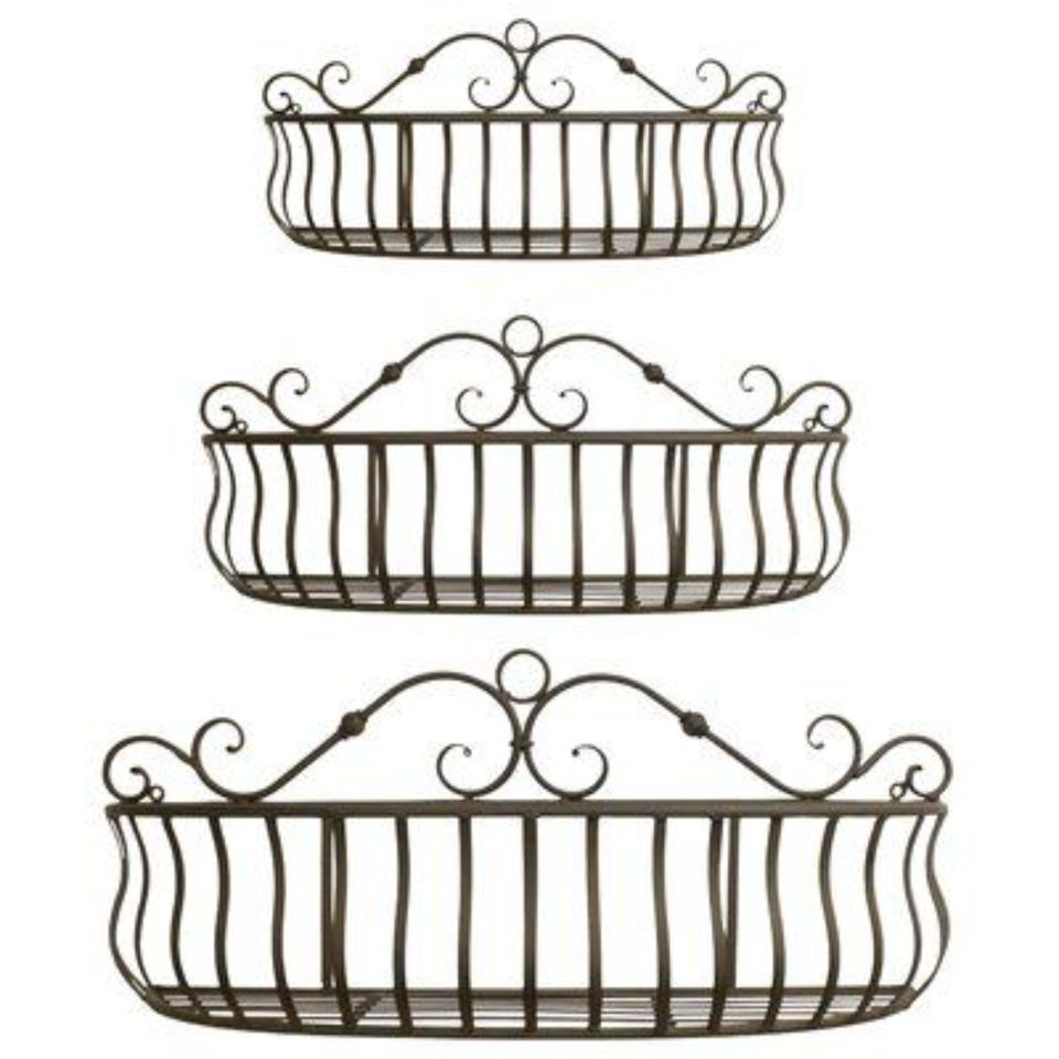 Iron Scrollwork Wall Mounted Planter Baskets Set Of 3 Metal Hanging Flower Pot Holder For Indoor Outdoor Garden Balcony Decor