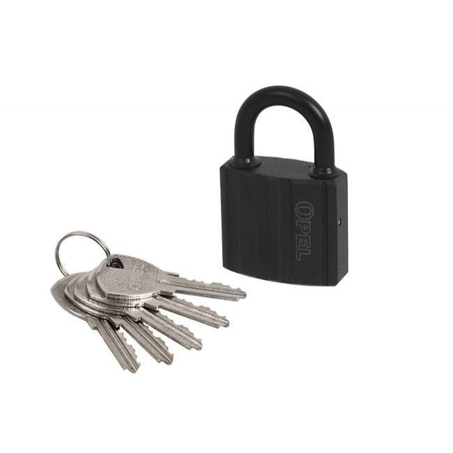 Iron Shackle Padlock OPEL 50, Black, 5 Serrated Keys
