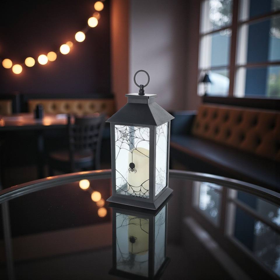 Iron Spider Web Lantern Black Halloween Candle Holder with Intricate Web Design for Spooky Indoor Outdoor Decor