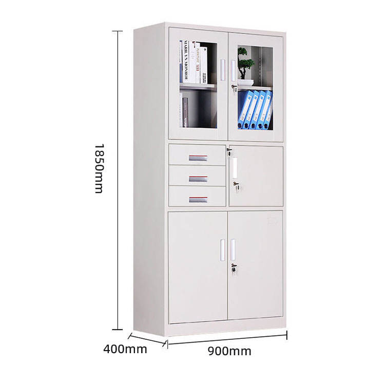 Iron Swing Glass Door Key Lock Adjustable 3 Drawer Steel Metal Office Home Kitchen Storage File Cabinet