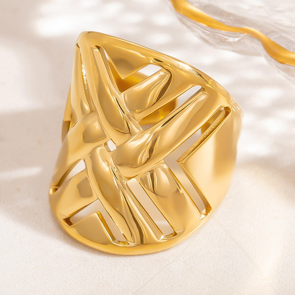 Irregular Geometric Fashion Rings 18k Gold Titanium Steel Unisex Party Jewelry