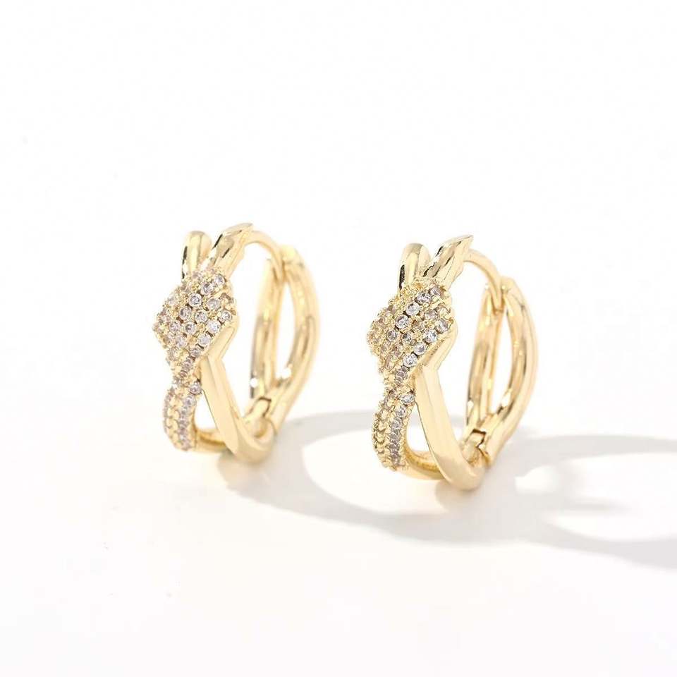 Irregular Hollow 14K Gold Plated Waterproof Inlaid Zircon Brass Hoop Earrings Classic Trendy Party Women's Jewelry