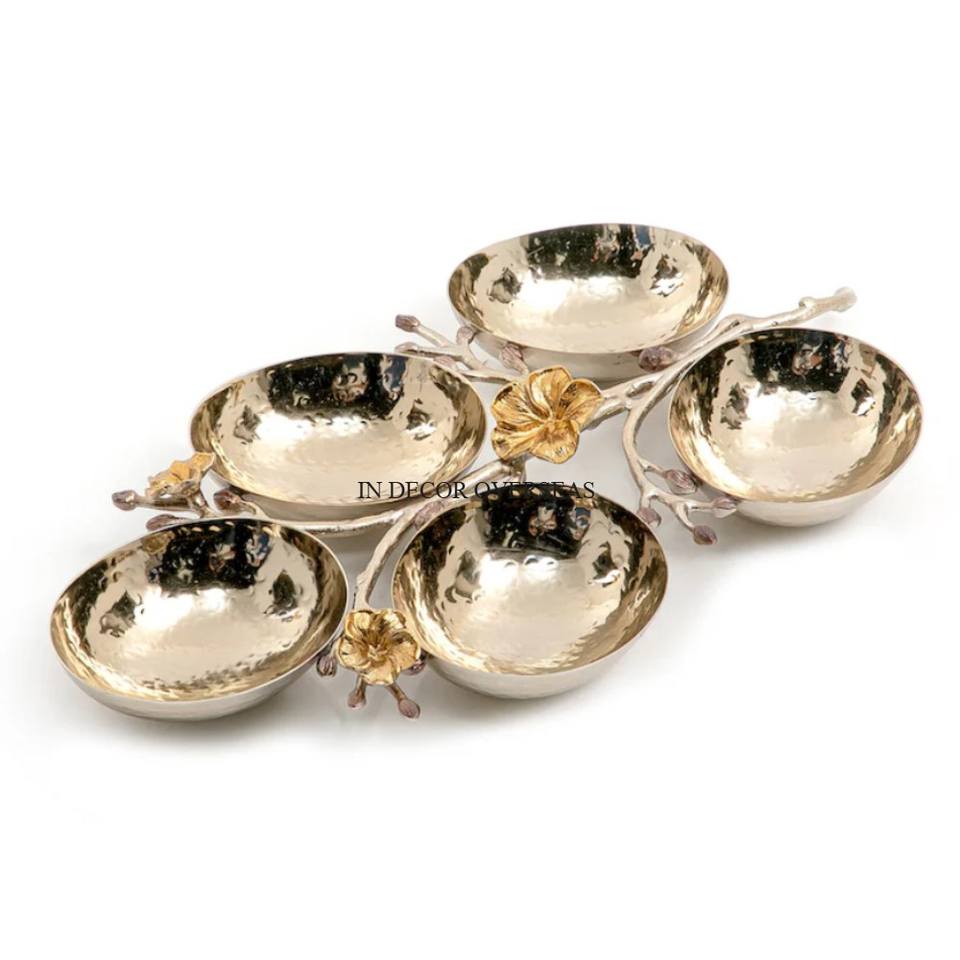Irregular Shape Aluminum Casted Gold Plated Bowl With Silver Shiny Polished Bird Design Home & Hotel Table Centerpiece Bowl