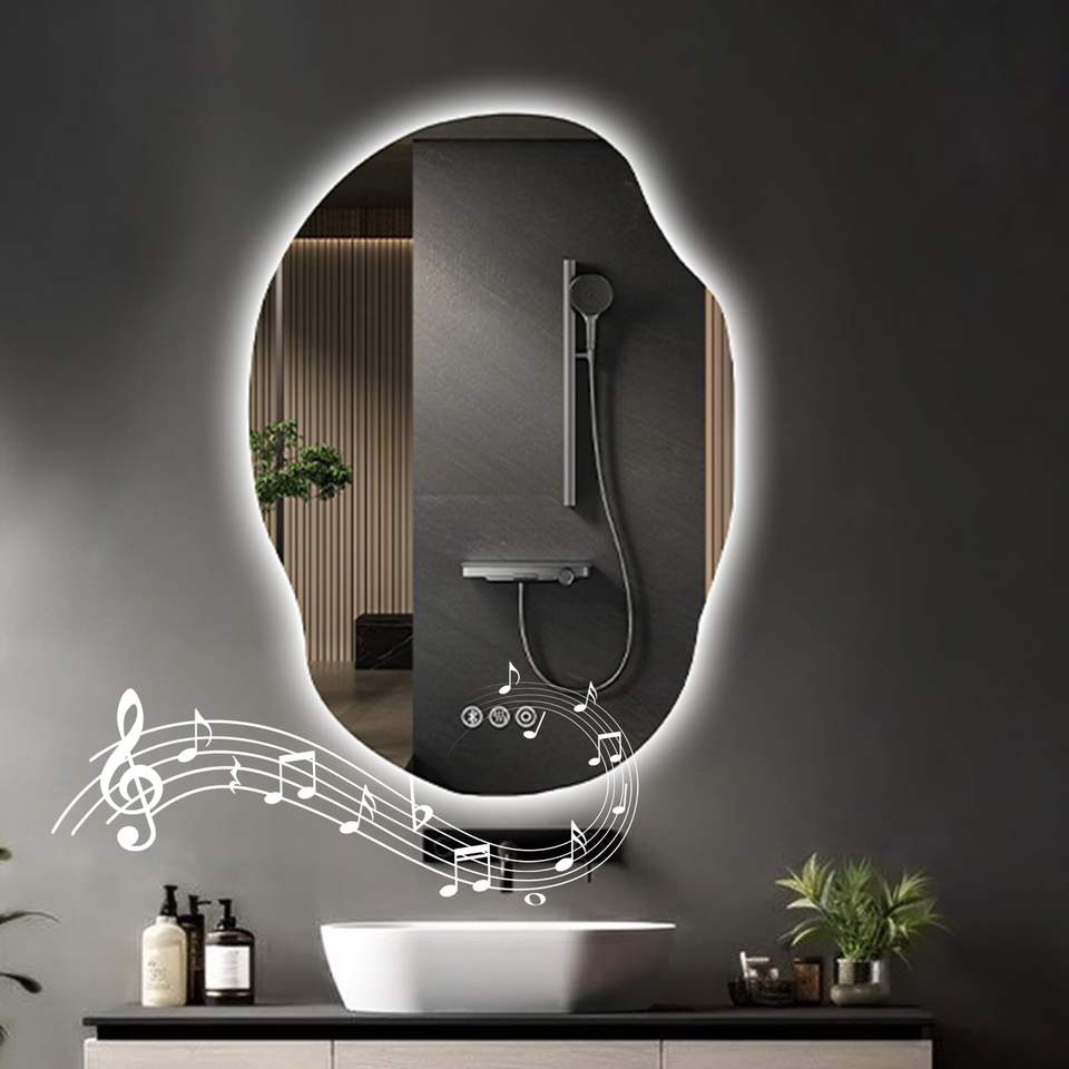 Irregular Shaped Silver Smart Mirror LED Light Luminous Wall-Mounted Bathroom Mirror Defogging Touch Screen Illuminated Feature