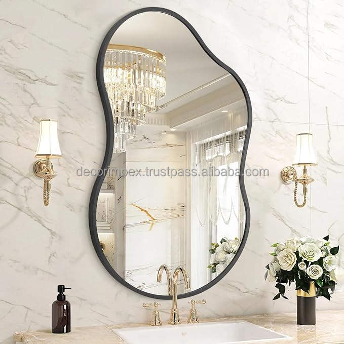 Irregular Wall Mirror Wall Mirrors Decorative Black Asymmetrical Mirror Aviation Alloy Frame for Bathroom Living Room, Bedroom,