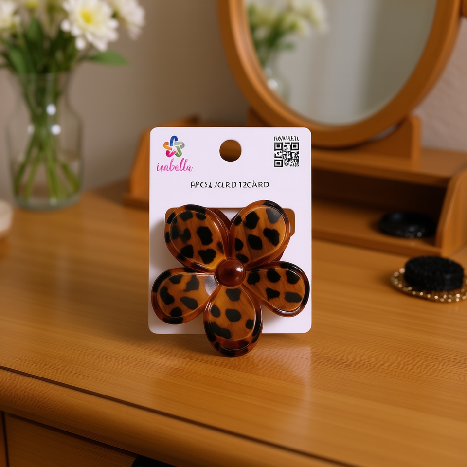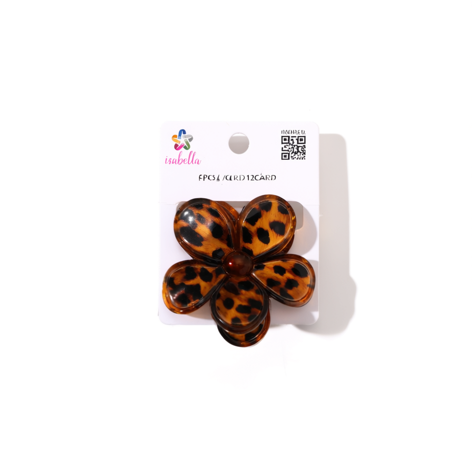 Isabella Five-Petal Flower Claw Clip 12 Cm Leopard Print Acrylic Hair Accessory Daily Fashion Style