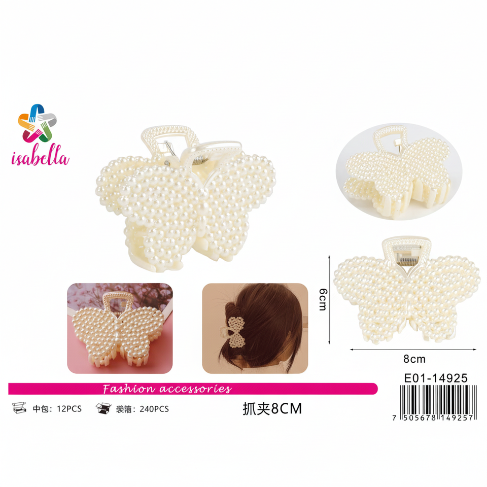 Isabella Pearl Hair Claw 8Cm Elegant Women Plastic Clip Daily Use High Quality Jewelry Accessory
