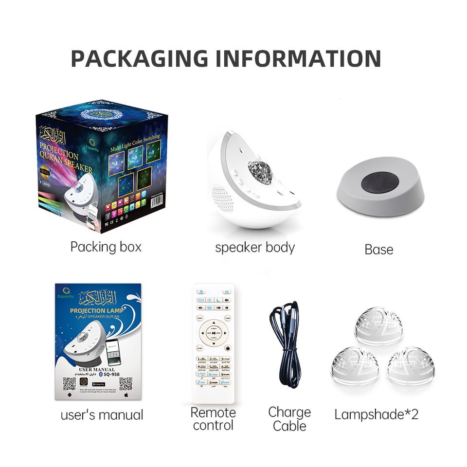 Islamic Gift Quran Speaker Lamp Quran Audio 16 Reciters and 16 Translation Quran Speaker galaxy Star Projector