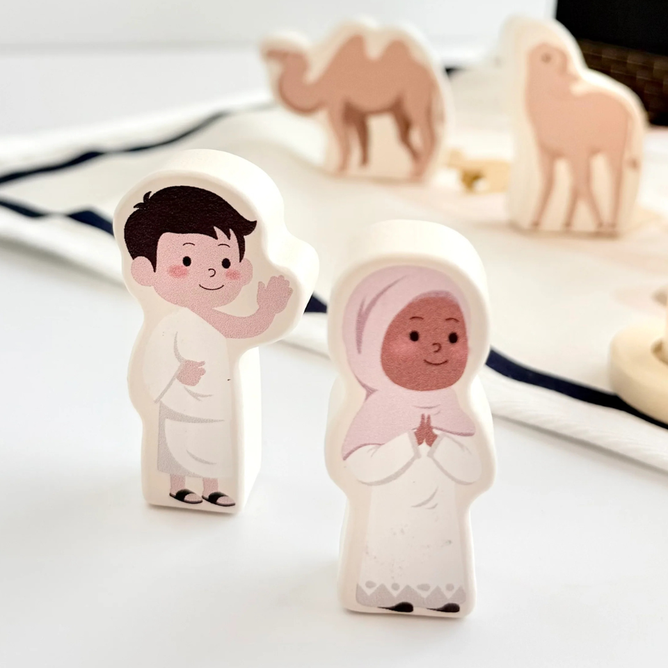 Islamic Montessori Wooden Play set Solid Wood Hajj Rites Blocks Play Mat Toy for 2-4 and 5-7 Years