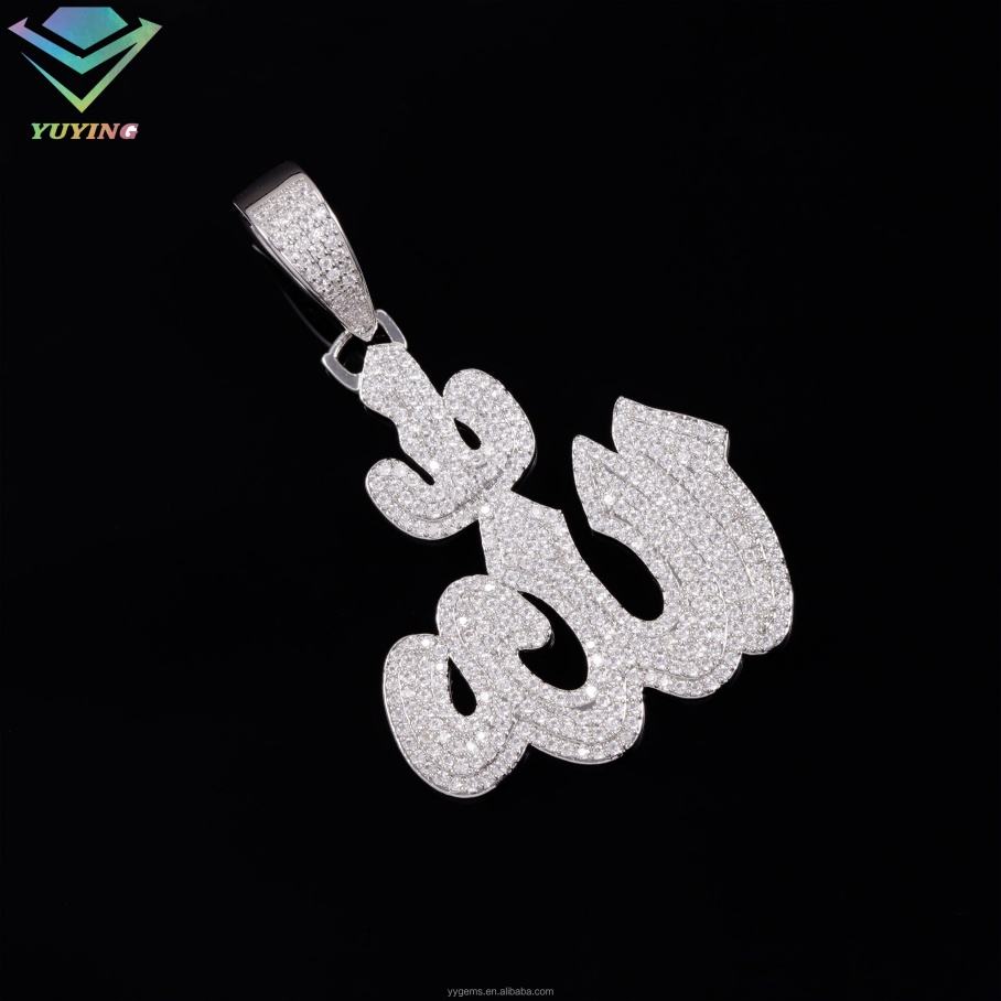 Name:Solid 925 sterling silver moissanite Allah pendants