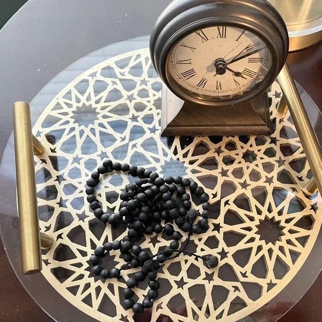 Islamic Pattern Wooden Sweets Serving Tray with Acrylic Top | Decorative Ramadan Eid Gift Box for Dates, Dry Fruits, Desserts