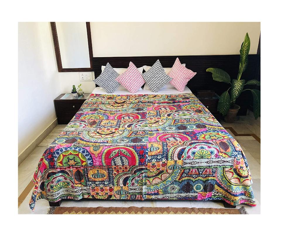 Israel Printedc Kantha Quilt Indian Kantha Bedspread Cotton Blanket Bohemian Reversible Quilt Handmade Kantha Bedcover
