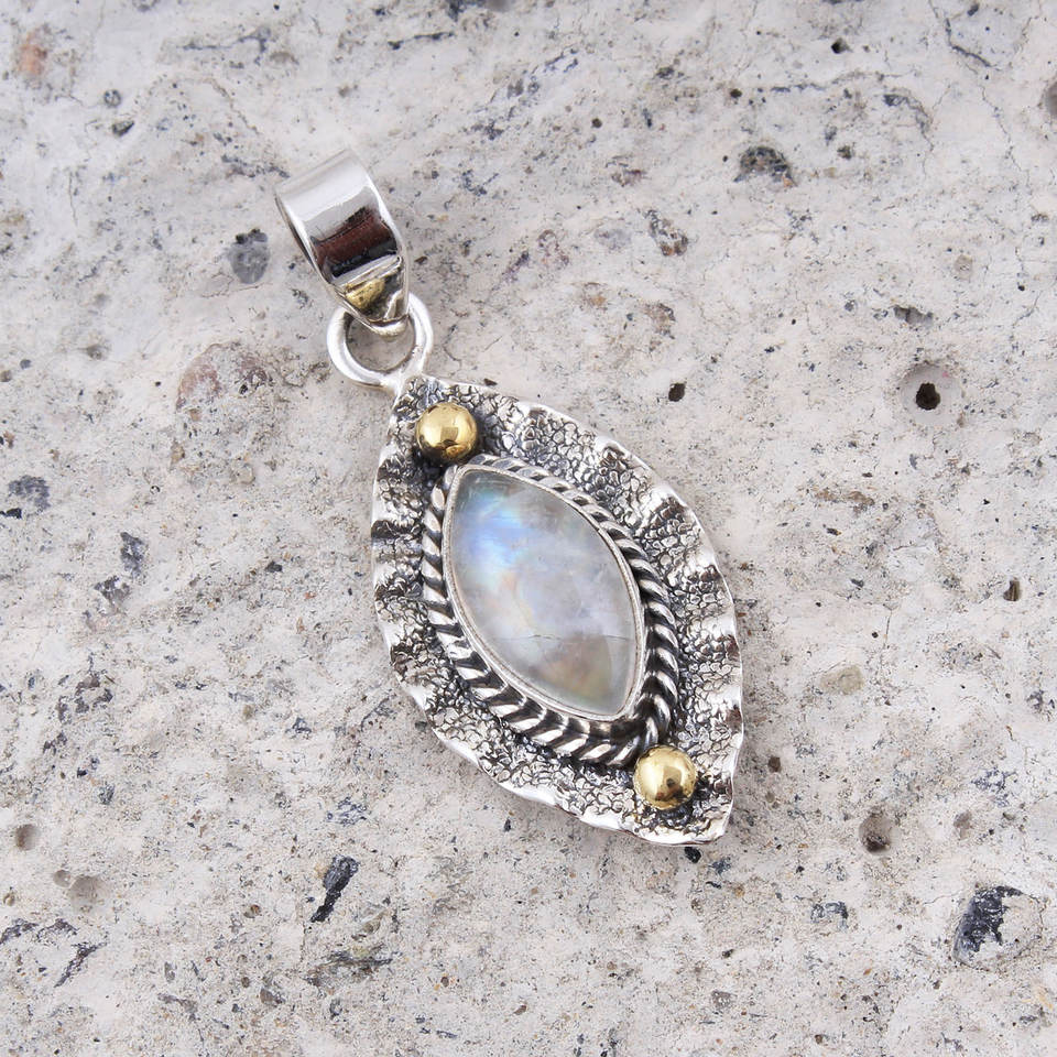 Israeli Design rainbow Moonstone 925 Sterling Silver Fashion Pendant Locket With Elegant Look