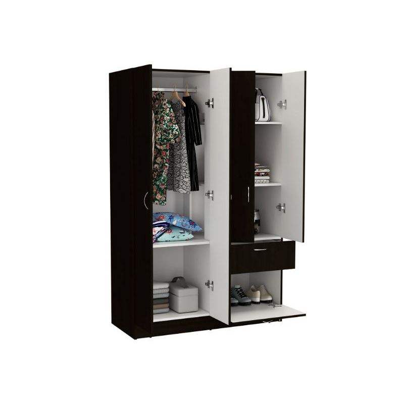 Itaca Double Door Armoire with One Drawer and Five Interior Shelves Rod Elegant Wardrobe Cabinet