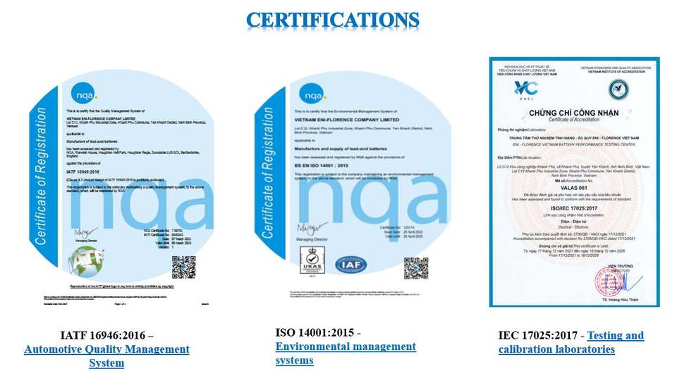 ISO 9001L; ISO 14001; IATF 16949