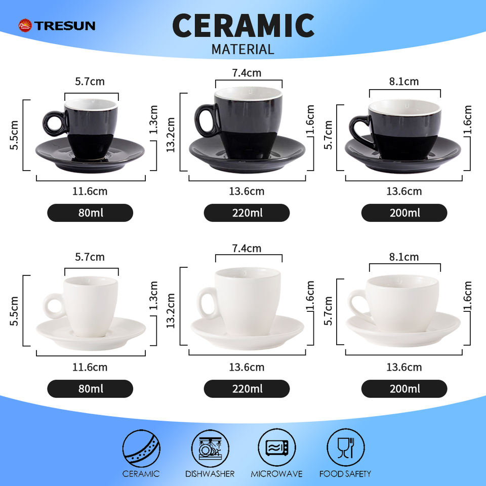 Italian Ceramic and Porcelain Cappuccino Espresso Coffee Cup Saucer Set Glazed Thick Wall Latte Cup Available in Various Sizes