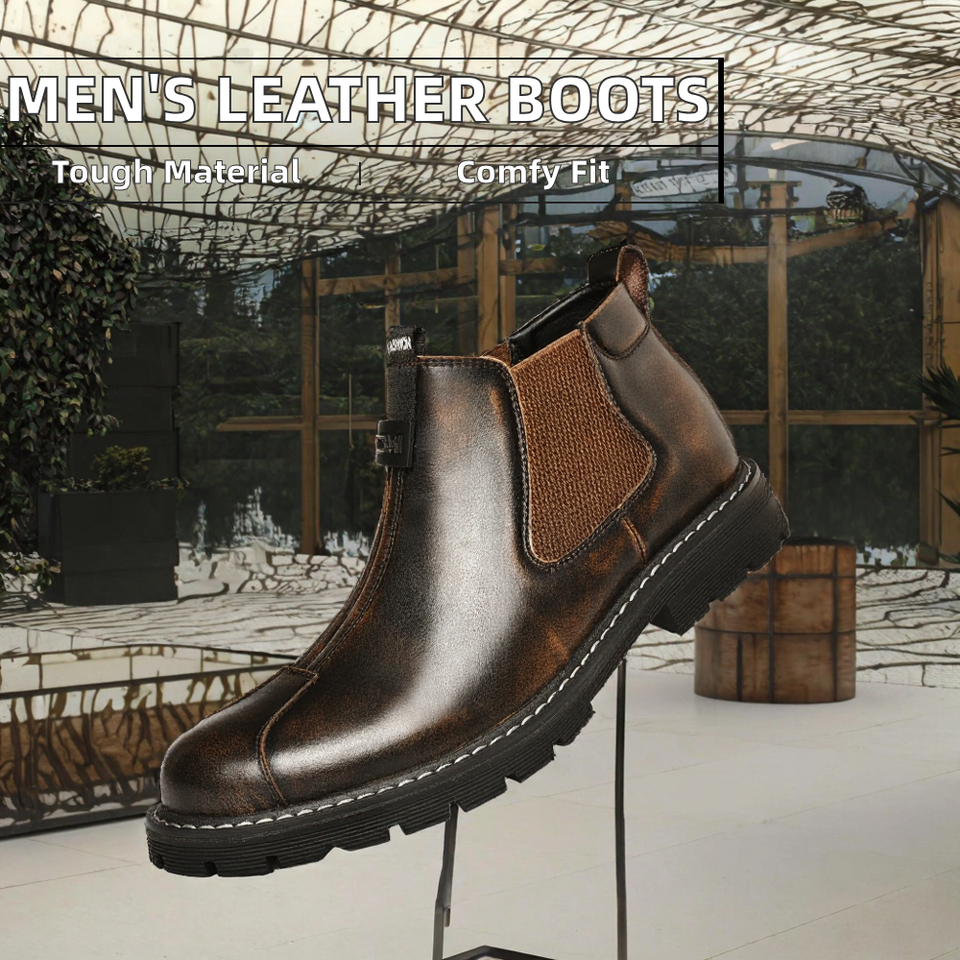 Italian Design Mens Chelsea Ankle Spring Boots Genuine Leather Anti-Slip Slip-On Business Office Boots
