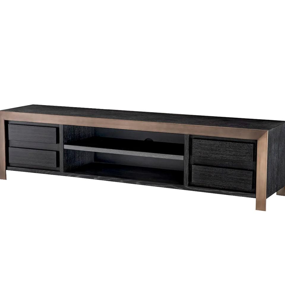 Italian Design Modern Tv Unit Black Wooden Entertainment Center Tv Stand with Metal Frame