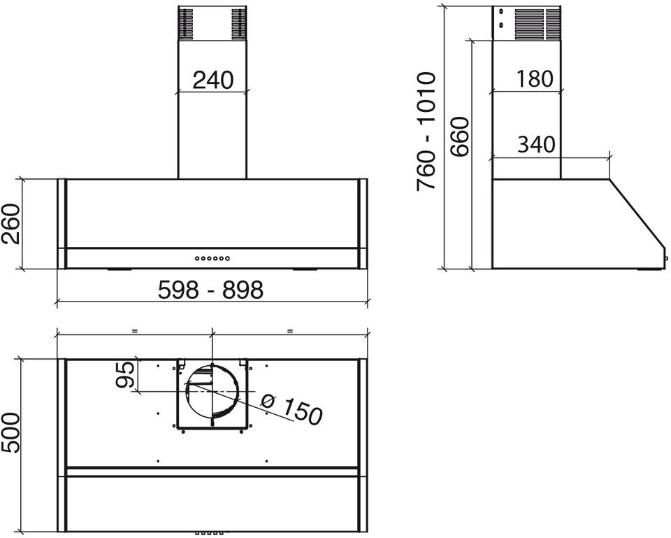 3 speed,Extraction horizontal plane,Air outlet 120-150mm with valve