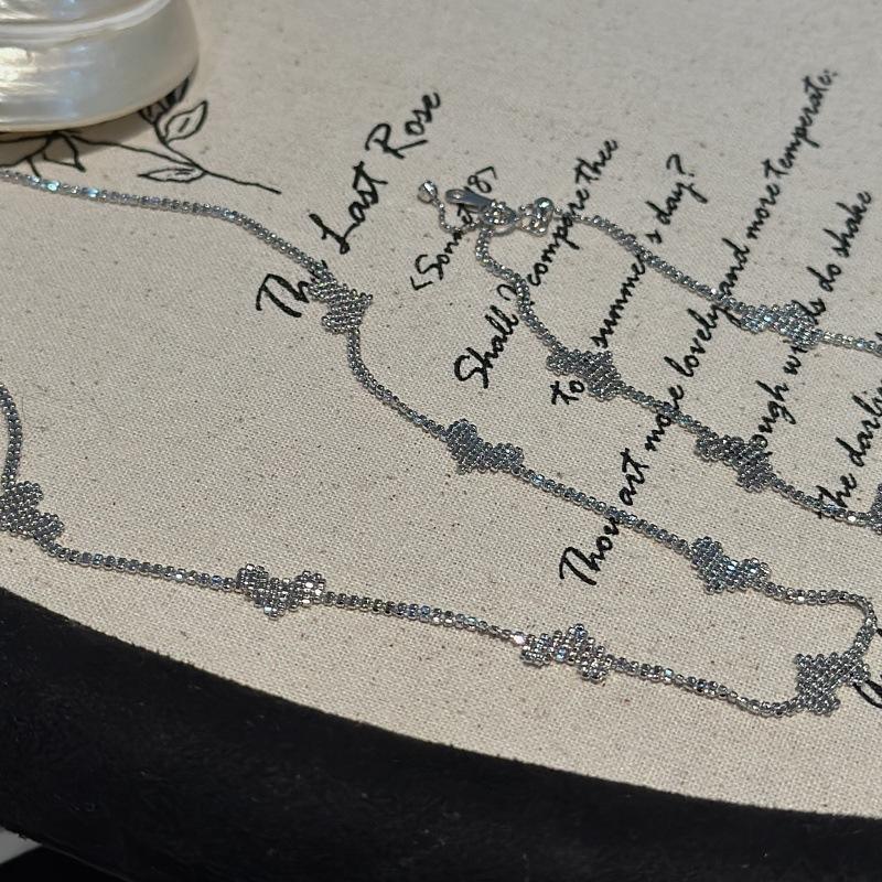 Italian French Retro Design S925 Pure Silver Necklace Simple Stackable with Beads Fashionable Beaded Necklace