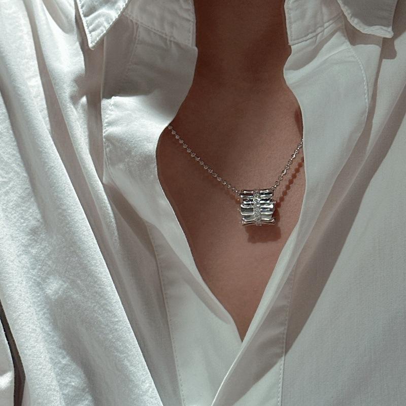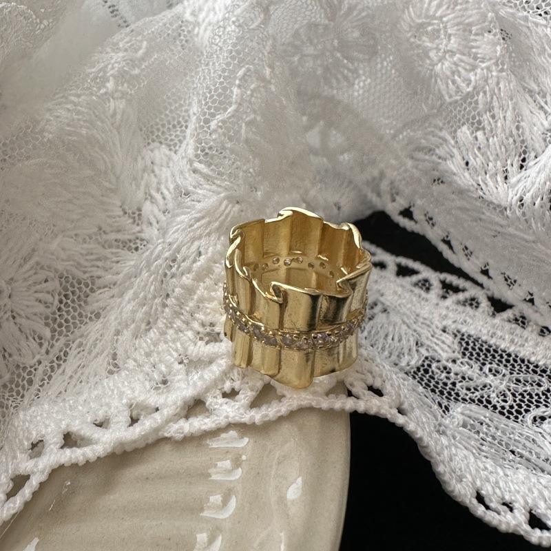 Italian French Retro Vintage Style S925 Pure Silver Pleated Ring Pendant Elegant Light Luxury with Zircon Elegant Temperament