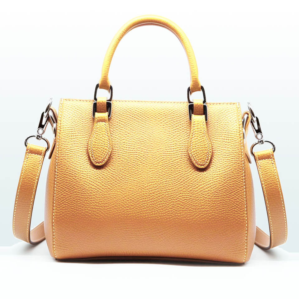Italian Handcrafted Bauhaus Style Real Leather Handbag with Strap Embellishments - Best Design, Made with Fine Italian Leather