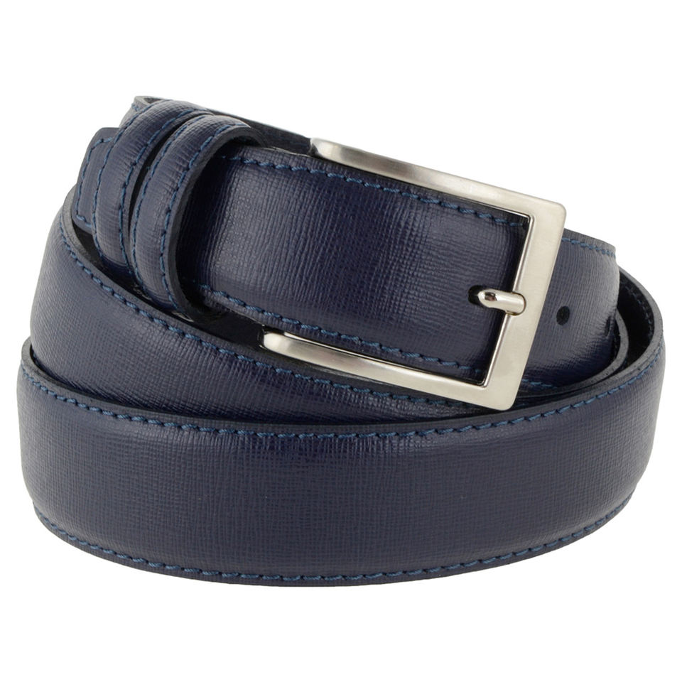 Italian Handmade Elegant Blue Saffiano Genuine Leather Alloy Automatic Buckle Belt 3.5cm/1.38in 6pcs/box for Export