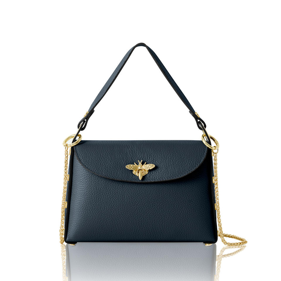 Italian Handmade Genuine Leather Top Handle Bag with Bee Emblem and Chain Strap