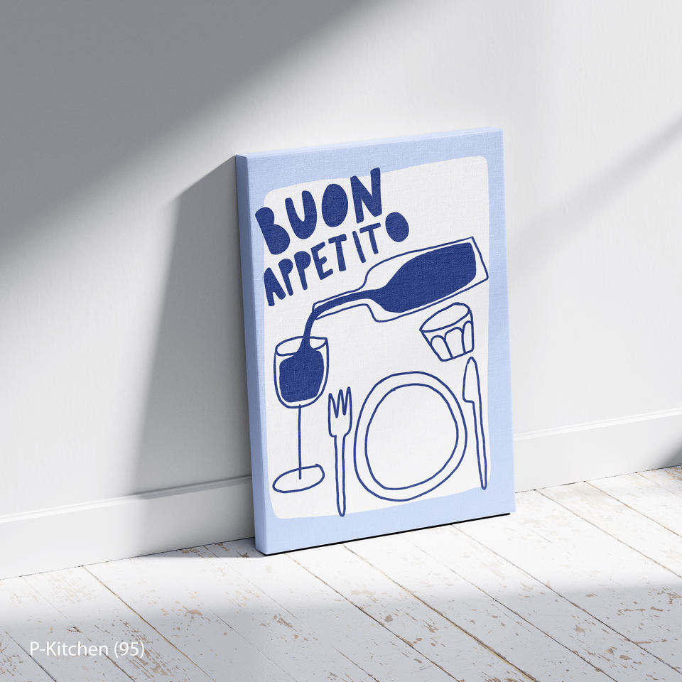 Italian Kitchen Canvas Art Mediterranean Dining Pasta and Wine Illustration Buon Appetito Wall Decor