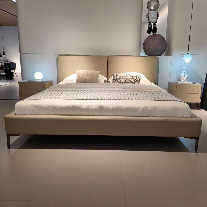 Italian Leather Latest Design Bed Room Set Designer Italy Furniture King Size Bed Frame Luxury